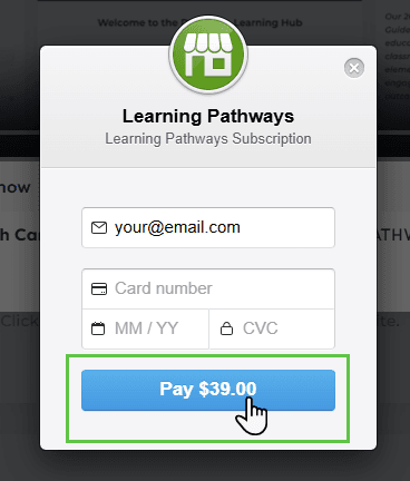 After pressing Pay $39.00 your payment will be processed, after a few seconds the screen will refresh, and the DA Learning Pathways content page will appear. A receipt will be emailed to the email address you entered.
