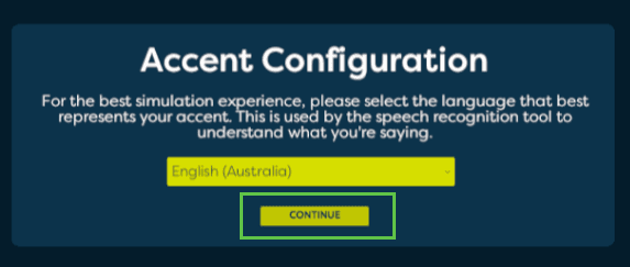 2. After the application has loaded, you will be asked to select your accent from the drop-down box. Select your accent and select “continue”.