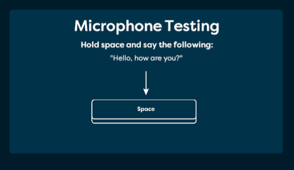 3. Next you will be asked to test your microphone by holding down your spacebar and talking. Hold down your space bar, say the words “Hello, how are you?”, then let go of the spacebar.