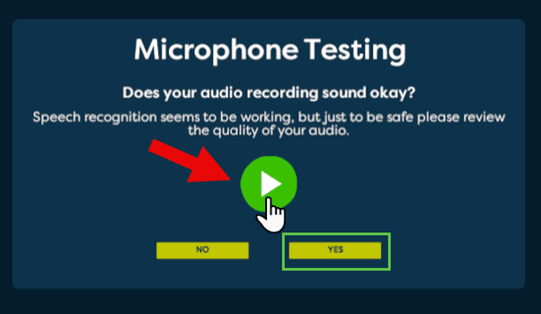 4. Play back the recording by pressing the play button. Select “Yes” if you hear your voice played back.